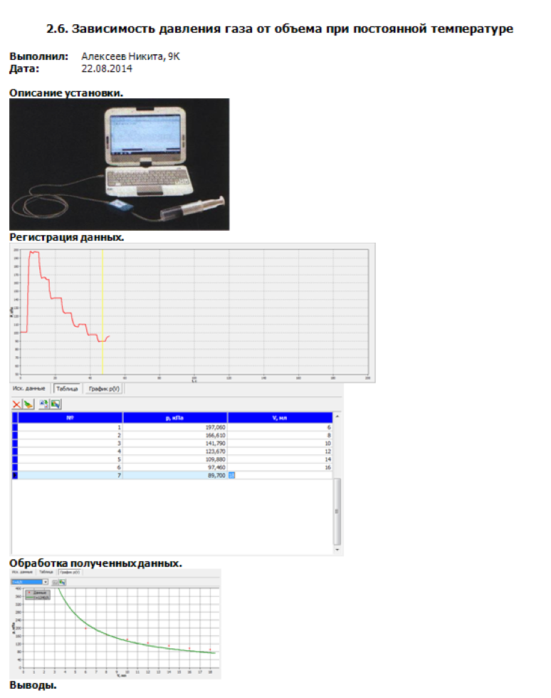 В большинстве лабораторных работ используется цифровая регистрация данных при помощи персонального компьютера (нетбука). Полученные данные обрабатываются встроенным программным обеспечением и составляется отчет о выполненной работе. Ученики также могут формировать электронный отчёт в виде rtf-файла, в который войдет: