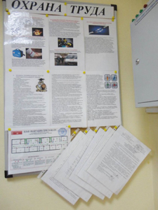 В кабинете есть информационные стенды, огнетушители, аптечка.