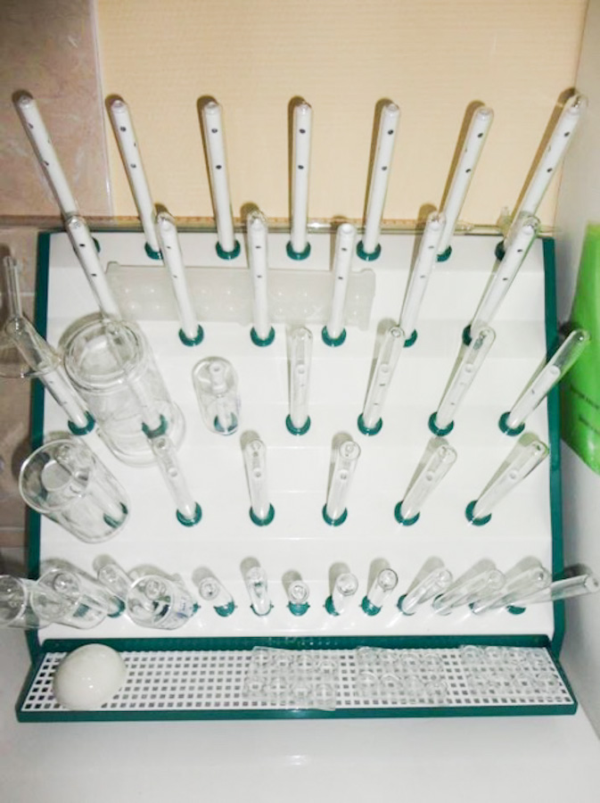 Сушка химических пробирок, стеклянных воронок, стаканов
