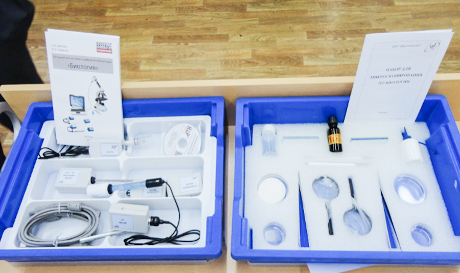 Комплект оборудования по биологии позволяет проводить исследования и эксперименты на пришкольных участках, парковых зонах, водных объектах. В набор оборудования входит мобильная лаборатория, необходимая для проведения биолого-экологических и биолого-химических исследований, анализа почвы, воды и воздуха. Набор «Молекулярная биология» позволяет выделять ДНК из биологических объектов, проводить биохимическую диагностику.